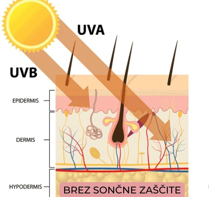 UVA žarki prodirajo globoko v kožo, do dermisa, kar lahko povzroči dolgoročne poškodbe, vključno z gubami in izgubo elastičnosti kože.